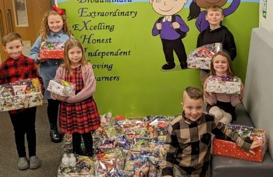 The pupils gave up their break times for a number of weeks to sort donations and put their boxes together and they felt proud that they were able to help others less fortunate than themselves.